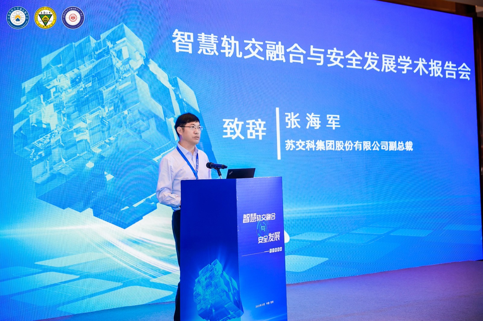 大會(huì)期間,集團(tuán)聯(lián)合江蘇省綜合交通運(yùn)輸學(xué)會(huì)鐵路(軌道交通)分會(huì)、現(xiàn)代交通智庫(kù)共同承辦“智慧軌交融合與安全發(fā)展學(xué)術(shù)報(bào)告會(huì)”。特邀國(guó)家鐵路局科法司一級(jí)調(diào)研員劉曉冬出席論壇,上海市域鐵路運(yùn)營(yíng)公司總工辦主任高飛、中國(guó)鐵路上海局集團(tuán)有限公司正高級(jí)工程師曲思源、江蘇省鐵路建設(shè)管理有限公司副總經(jīng)理李曉峰、蘇交科集團(tuán)數(shù)字城建設(shè)計(jì)研究院院副總工、院長(zhǎng)助理石利群、廣州地鐵國(guó)家工程研究中心經(jīng)理葉紅霞、智慧交通研發(fā)中心副主任李鴻六位專(zhuān)家,圍繞軌道交通多網(wǎng)融合、運(yùn)營(yíng)安全關(guān)鍵技術(shù)等議題發(fā)表主題演講。專(zhuān)家們結(jié)合行業(yè)實(shí)踐與前沿研究,深入分析智慧軌交發(fā)展趨勢(shì),提出針對(duì)性技術(shù)與管理建議,為軌道交通領(lǐng)域的智慧化升級(jí)與安全發(fā)展提供專(zhuān)業(yè)思路。報(bào)告會(huì)吸引眾多業(yè)內(nèi)人士參與交流,有效促進(jìn)了智慧軌交領(lǐng)域的技術(shù)共享與經(jīng)驗(yàn)互鑒。